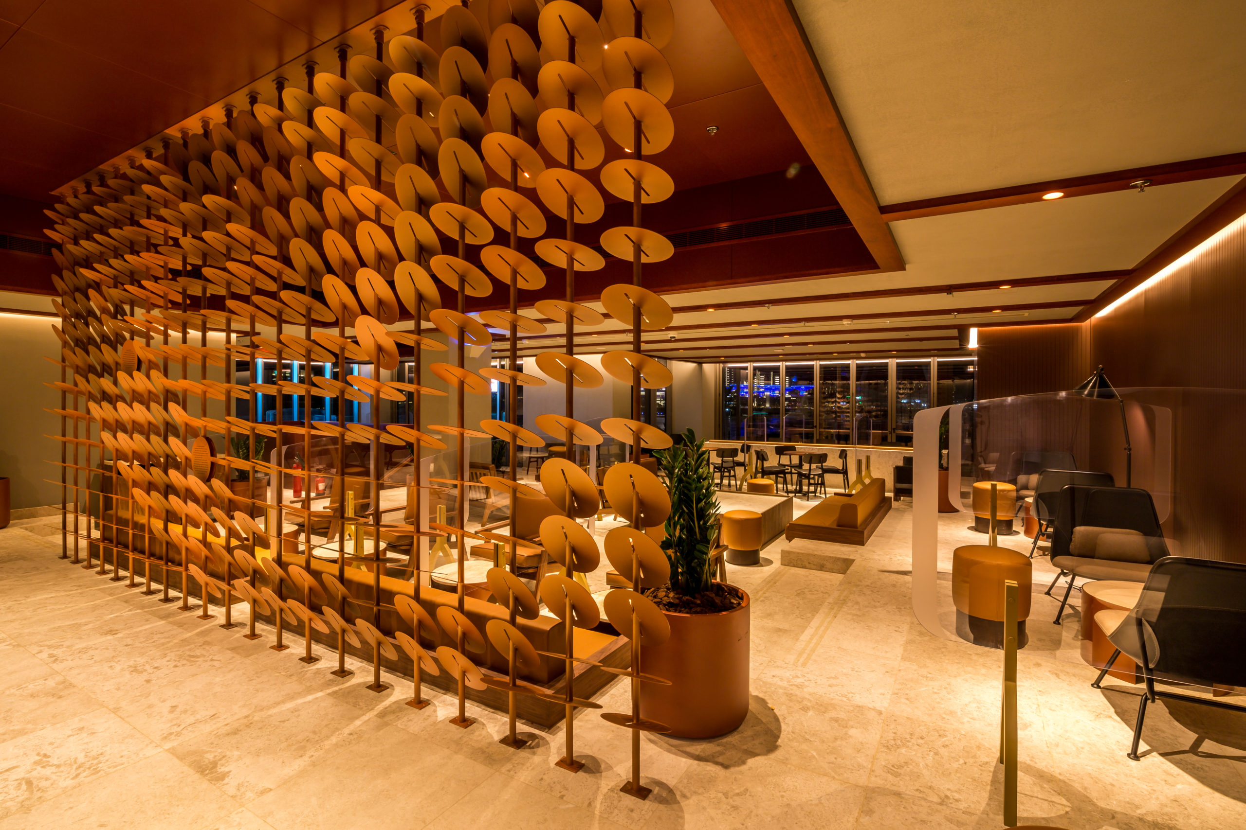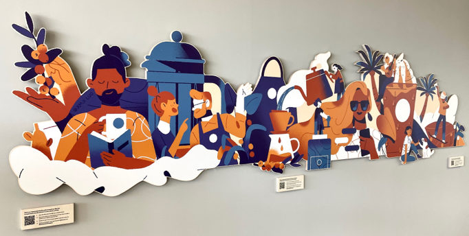 Laser cut steel, welded to metal tubes with varying angles to replicate a coffee bean opening during roasting.