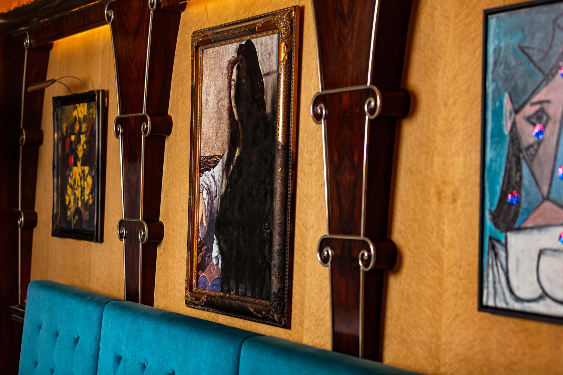 Custom framing, distressing elegant sweeping frames with various stains, sprays and flames.